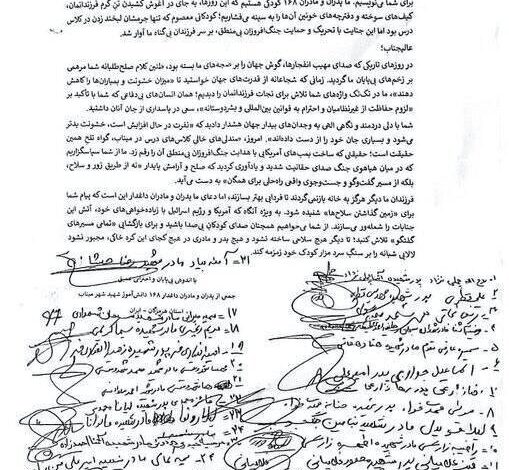 جمعی از خانواده‌های کودکان شهید مدرسه میناب در نامه‌ای خطاب به پاپ لئون…
